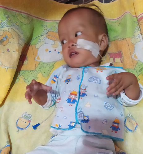 Tubuh mungilnya seringkali membiru, dadanya naik turun dengan sesak yang hebat, dan berat badannya terus merosot jauh di bawah batas normal.