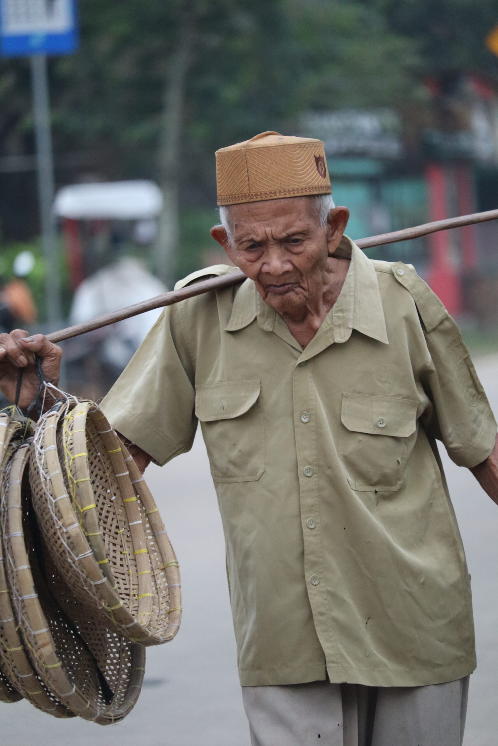 Usianya hampir 125 tahun, dadanya naik turun menahan sesak, tubuhnya bergetar setiap kali melangkah. Bagaimana tidak? Beliau membawa gerabah 10kg, sejauh 15 kilometer untuk dijual, sehari cuma dapat 15 ribu. Ia berjuang mati-matian demi hidupi istri. Meski pendapatannya tak seberapa, ia selalu sisihkan sebagian rezeki yang ia miliki untuk disedekahkan kepada orang lain.